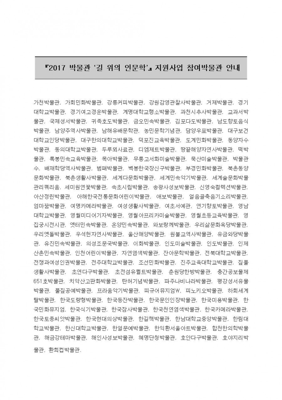 2017 박물관 길 위의 인문학 지원사업 참여박물관 페이지 정보 작성자 관리자 작성일17-03-07 09:18 조회42,175회 댓글0건 관련링크 이전글 다음글 목록 본문 2017 박물관 길 위의 인문학 지원사업 참여박물관 댓글목록 등록된 댓글이 없습니다. 이전글 다음글 목록