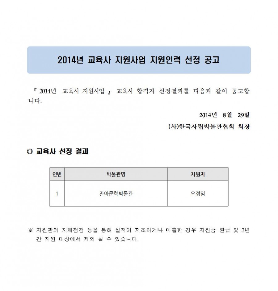 [2014 교육사 사업] 2014년 교육사 지원사업 지원인력 선정 공고(2차)